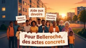 Le quartier de Belleroche a été frappé en quelques mois par plusieurs drames : un accident de moto cross le 21 janvier qui a fait deux morts dont un jeune de 13 ans, la mort d’un enfant du même âge le 13 avril par arme à feu … Un collectif Belleroche…
