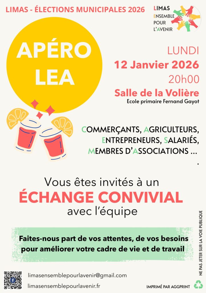🎉 Rendez-vous le 12 janvier ! Limas Ensemble pour l’Avenir vous invite à une rencontre unique qui rassemble tous les acteurs qui font vibrer notre commune : commerçants, entrepreneurs, agriculteurs, associations, salariés… Vous tous qui faites battre le cœur économique de Limas !