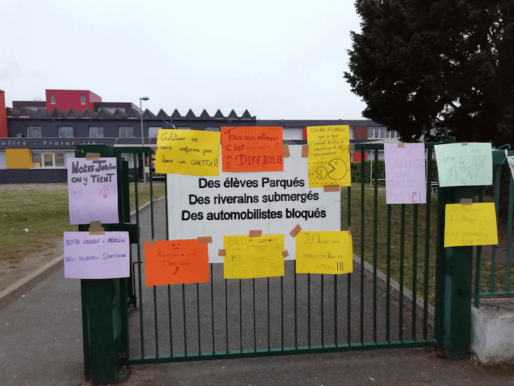 La mobilisation contre la construction du collège avait pris de l’ampleur : plus de 1250 signatures récoltées via une pétition en ligne, plusieurs manifestations organisées. Les parents avaient même organisé une action coup de poing avec l’affichage de 1500 visages d’élèves devant le collège pour dénoncer ce qu’ils considéraient comme une “aberration”.